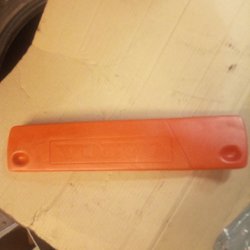 Hopvikbar varningstriangel med praktiskt plastfördral. Mycket fint skick. Mått på den röda förpackningen: ca 42x11x5 cm