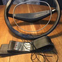 Nytillverkat rattöverdrag i äkta beige skinn.