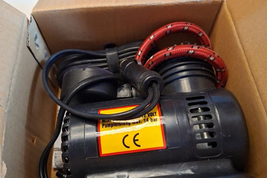 En mini kompressor för 12V. Pumpleistung max. 14 bar. CE märkt.