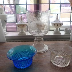 Design: Serien lanserades 1977 och kännetecknas av optikblåst glas med vågiga väggar som skapar ett rutmönster.