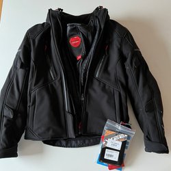 Jacka dam i storlek 38. Har inbyggda skydd. Nära nyskick. Har använts vid Mc-åkning.