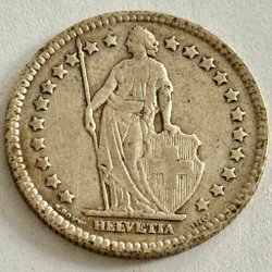 Silvermynt Schweiz 1 franc från 1931, kvalitet 1+, ej rengjord
