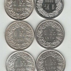Silvermynt Schweiz, 1 franc från 1931, kvalitet 1+, ej rengjord