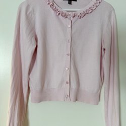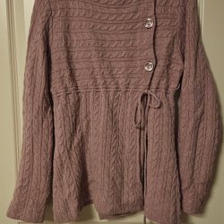Stickad kofta med puffärmar och knäppning framtill. Vintage kofta