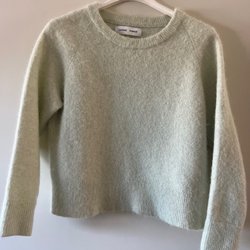 Lila stickad ullkofta från Indiska med en knapp framtill. Fint stickat mönster på ryggen och framsidan.