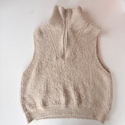 Vit kofta med flätstickat mönster och knäppning framtill. Koftan har långa ärmar och en rundad halsringning.