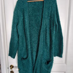Långärmad kofta med öppen front och fransdetaljer nedtill. Mönstrad design med fjärilsmotiv på ryggen. Perfekt som ett lätt ytterplagg eller för att komplettera en outfit.