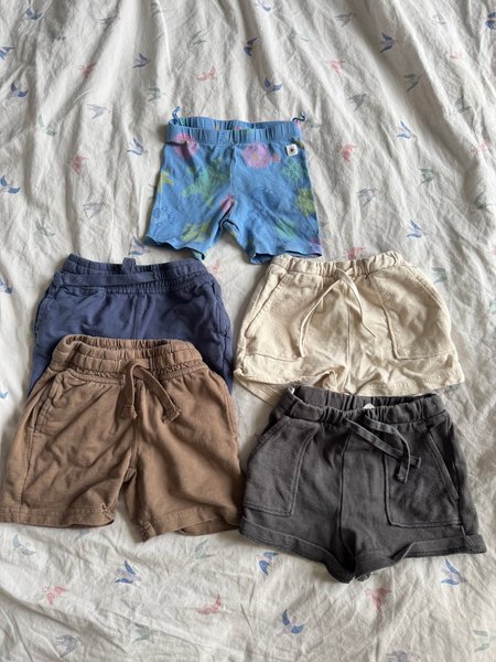 Ett set med fem par shorts i olika färger och stilar. Shortsen har resår i midjan och dragsko.