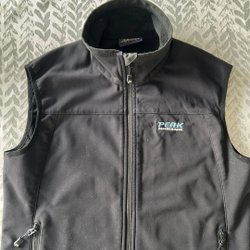 Peak Performance väst i svart och grått med dragkedja fram och fickor med dragkedja på sidorna.