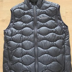 Vatteret vest med lynlås og lommer med lynlås. Vesten er uden ærmer og har en høj krave.
