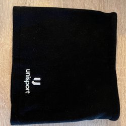 Svart vadderad väst med dragkedja framtill. Den har en hög krage och två fickor med dragkedja på sidorna. Det finns en liten defekt på nederkanten av västen.