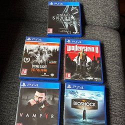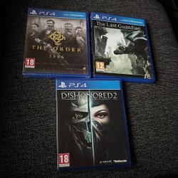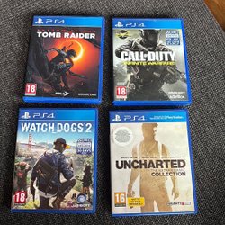 Säljer ett paket med fyra PS4-spel: Thief, Technomancer, Infamous Second Son och Horizon Zero Dawn. Perfekt för dig som vill utöka din spelsamling med varierande titlar.