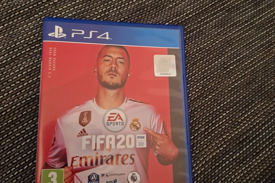 Ett exemplar av spelet FIFA 20 för PlayStation 4. Spelet har Eden Hazard på omslaget.