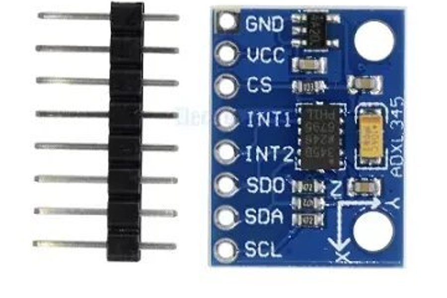 ADXL345 är en liten, strömsnål accelerometer med 13-bitars uplösning som känner av rörelse i tre riktningar.