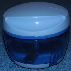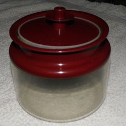 En kanna från Tupperware med ett mörkblått lock.