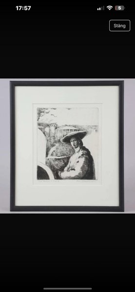 En vacker tavla med motiv.HANS JOHANSSON. torrnålsgravyr, "Damen i hatt II", signerad, numrerad51/110 ,samt daterad 2003.