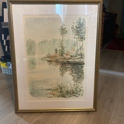 Två tavlor i en! En inglasad med bergsmotiv och en målning på baksidan av tavlan. Storlek 51 x 41 cm.