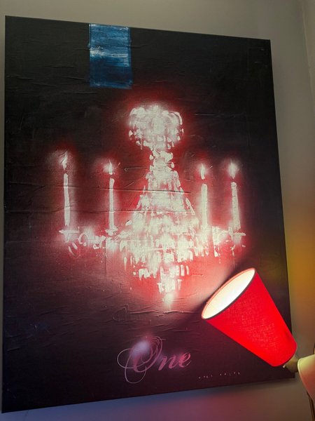 En tavla med motiv av en ljuskrona