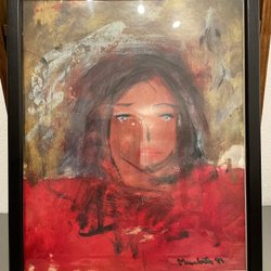 En tavla med ett motiv av en kvinna.