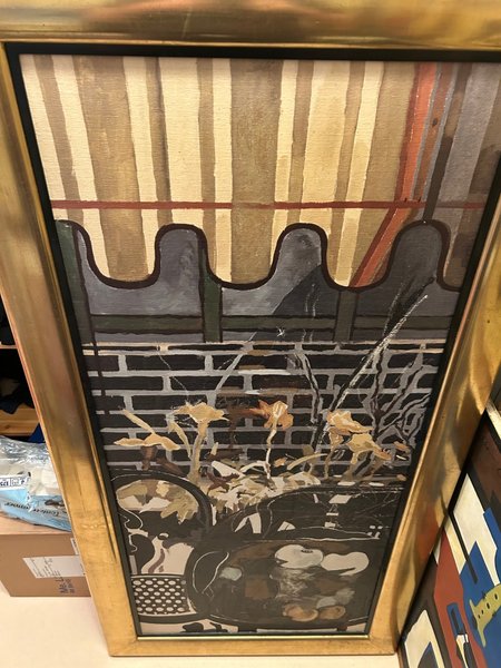 Mycket stor och fint tryckt tavla med guldram. Litet lagat hål. Lagat så man inte tänker på det.