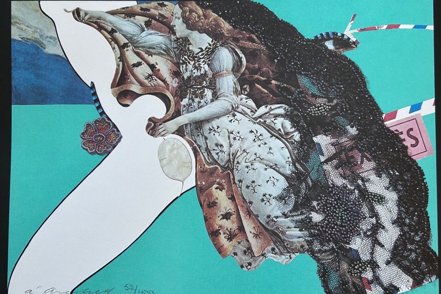 Bilden är ca 20x29 cm, omgiven av svart fält (tot ca 45x36 cm).