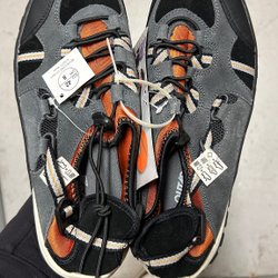 Ett par oanvända robusta vandringskängor från Mounty. Perfekt för utomhusaktiviteter och vandring i varierande terräng. Kängorna har snörning och en grov sula för bra grepp.