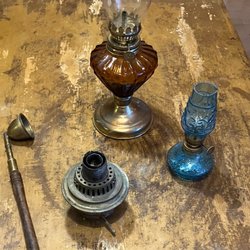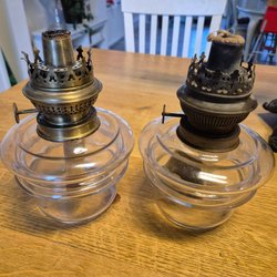 Två fotogenlampor i glas.
