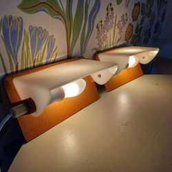 Två sänglampor med rosa och vit färg. Perfekt som mysbelysning.sänglampor,ca 30 år