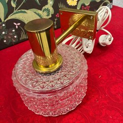 Två fönsterlampor i mässing med detaljer i kristallglas. Lampan har en unik design som ger ett vackert ljusspel.