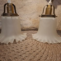 Äldre Fönsterlampor med dekorativ design. Perfekt för att skapa en mysig atmosfär i hemmet. Parkopplade. Ca 12x12 cm