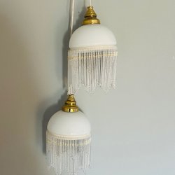 2 vackra Fönsterbelysningar med guldförgyld stomme och fina kristallprismor