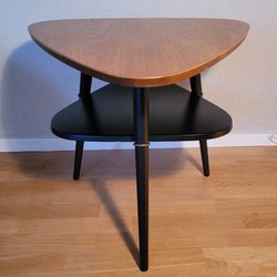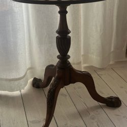 Pelarbord i valnötsfanér med en låda.