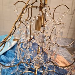 En vacker kristallkrona som sprider ljus och elegans i rummet. Perfekt för att skapa en stämningsfull atmosfär.