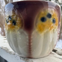Vackert majolika kruka. Finns krackeleringar, nagg o färg släpp kolla bilderna noga! Höjd ca. 15,5 cm, diameter ca. 18,5 cm. Märkt Rolf. Tidigt 1900tal.