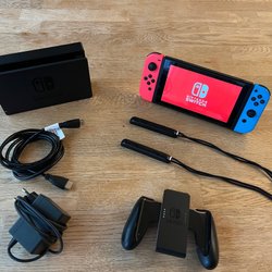 Nintendo Switch 2017, Normal Edition i lila/gul med 128GB sd kort med program i !