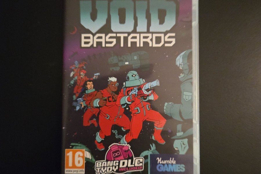 Spelet är Void Bastards till Nintendo Switch. "BANG TYDY DLC" ingår.