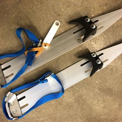 Ett par långfärdsskridskor, Everest skridsko och Salomon X-adv bindning.