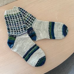 Säljer ett par handstickade ullsockor. Mönstret har små upphöjda "bubblor" som ger en charmig och lekfull struktur. Mjuka och varma – perfekta som gåva eller att hålla fötterna varma under vintern.