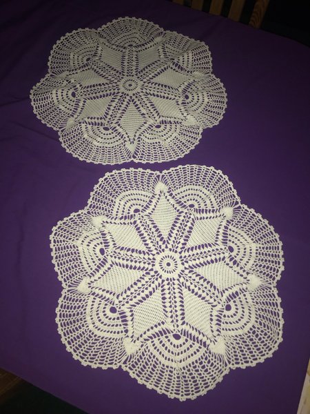 Två virkade dukar