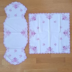 Vacker handbroderad matta