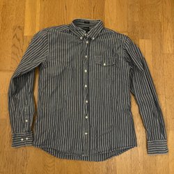 En fin trasmatta med ränder i blått, vitt och svart. Mattan är i mkt fint skick.