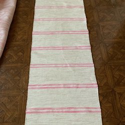 Handvävd trasmatta i fina färger. Perfekt för hallen eller köket.