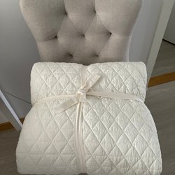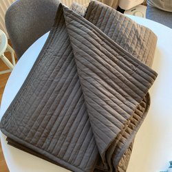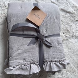 - Elegant överkast i linne med en subtilt randig design