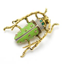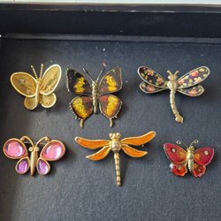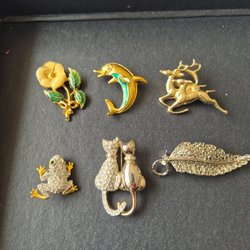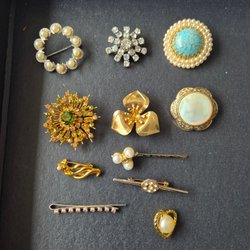Broscher förknippas ofta med ädelstenar, guld och silver. Trenderna genom årtiondena har dock även lämnat plats för retrobroscher och färgglada plastvarianter. Broscher finns i ett närmast oändligt antal olika varianter, både trendiga och klassiska. I Traderas utbud av begagnade broscher kan man hitta broscher silver och broscher guld. I allra bästa fall finns en Chanel brosch eller två ute för auktion – en dröm för den som gillar att klä sig klassiskt stilrent. Den som vågar ta ut svängarna har ofta ännu mer att hämta. Broscher, smycken och kläder är ett intresse som delas av många. Individuella preferenser styr garderobens innehåll och dessa förändras över tid. Titta igenom utbudet av aktiva annonser så kan du upptäcka broscher som gjort sitt i en persons smyckesgarderob, men som blir huvudnumret i din. Hos Tradera har du möjlighet att hitta begagnade broscher i alla prisklasser, från slutsålda varianter från budgetkedjorna till diamantprydda varianter från välkända juvelerare.