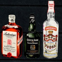 Tre flaskformade brevmärken? Whisky och Vodka