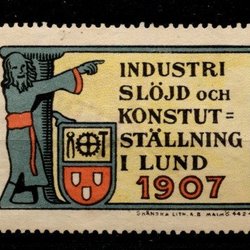 Brevmärke. Industri Slöjd och Konstutställning i Lund 1907.