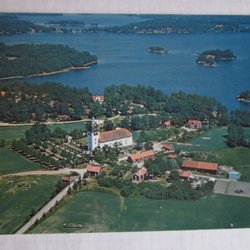 Vårdnäs - Flygfoto över kyrkan med omgivning