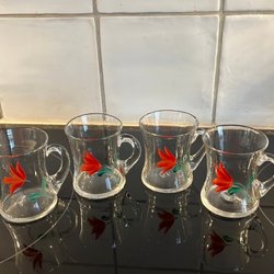 Glöggmuggar i glas med handmålad blomma