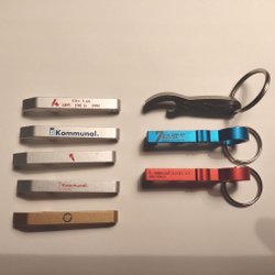 Nyckelringar/ölöppnare med reklam