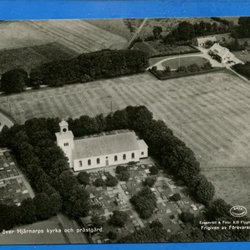 Flygfoto över Hjärnarps kyrka och prästgård